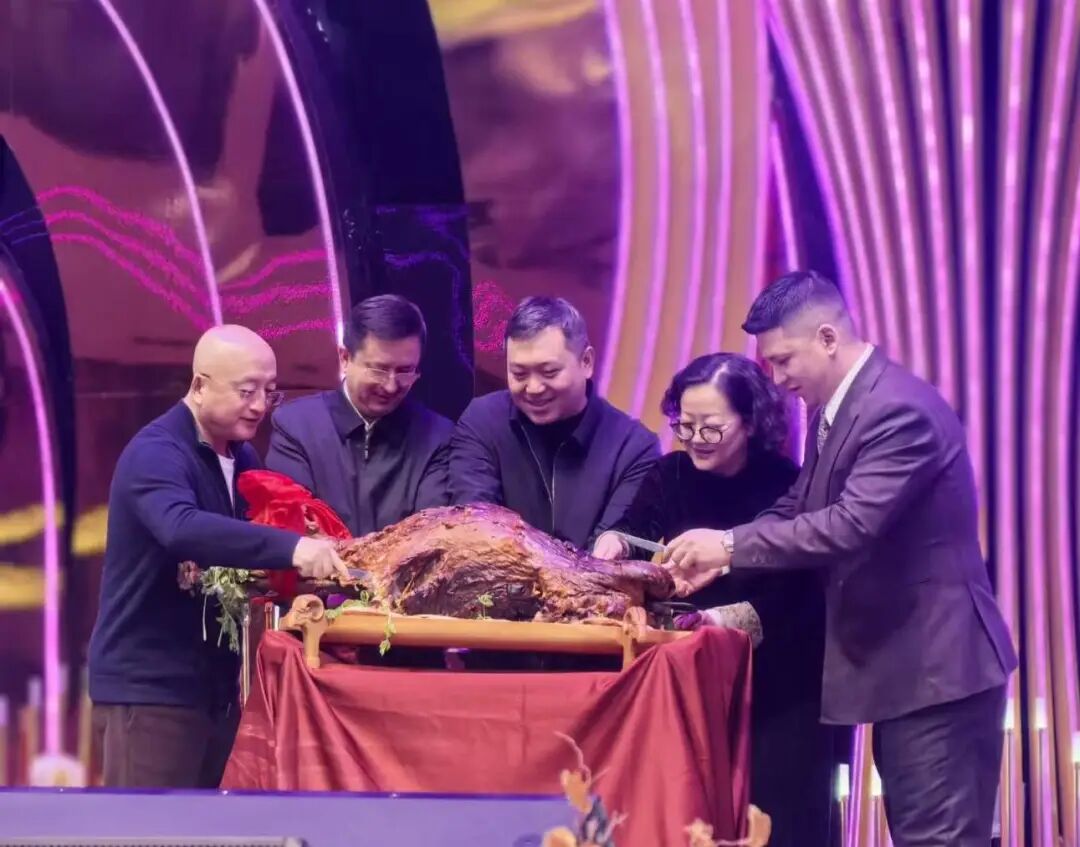 当天**特色的当属大赛剪彩仪式,创新采用烤全羊开羊仪式,工作人员将烤制得金黄酥脆、香气四溢的烤全羊抬至舞台中央,随后举行剪彩活动。在新疆饮食文化中,烤全羊是待客的**礼遇,象征着丰收、团圆与分享,这一**仪式感的环节为大赛拉开了精彩序幕。