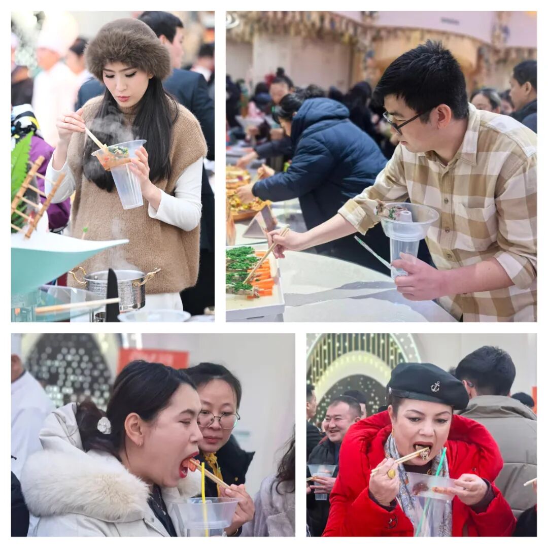 开幕式现场气氛热烈,高朋满座。天山区人民政府、天山区文化体育和旅游局、延安路街道、天山区商务局招商服务中心等领导亲临指导;新疆餐饮协会会长王若冰、秘书长白京堂、常务副会长、天山区餐饮协会执行会长阿布都克力木・太来提,以及印象新疆大剧院董事长迪力木热提等嘉宾齐聚一堂,共同见证这一文旅美食盛事。