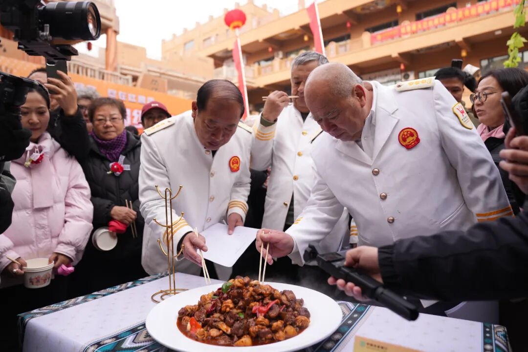 开幕式后,来自吐鲁番的11家大盘鸡门店同台竞技,众多市民、游客争相品尝。