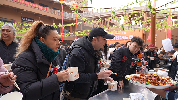 对于系列联赛的首场赛事“大盘鸡争霸赛”,王若冰说:“大盘鸡是**人民对新疆美食的认知度**的一个产品。通过今天的现场,可以看到有花卷大盘鸡、皮带面大盘鸡、红烧大盘鸡,甚至小龙虾大盘鸡。现今不少人对大盘鸡有着诸多模糊的认识,比如很多消费者不了解,为什么新疆大盘鸡里面有皮带面?其实大盘鸡的诞生地在沙湾,20世纪80年代初,沙湾最早一家做大盘鸡的店面叫杏花村,杏花村老板住在哈萨克乡,这儿杏花村受到哈萨克族美食“纳仁”的启发,把“纳仁”里的面融入到了大盘鸡当中,其后融入了汉、回、维吾尔等多个民族的口味而形成。这证明大盘鸡完**全是一个融合的产品,是一个‘铸牢’的产品,从它诞生那一刻开始,就代表着多民族共同的一个美好愿望。”