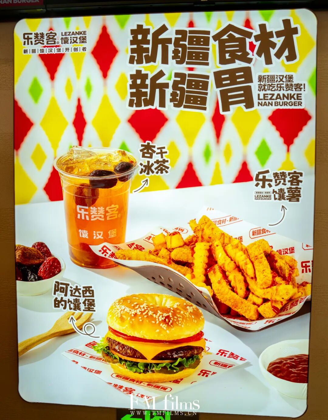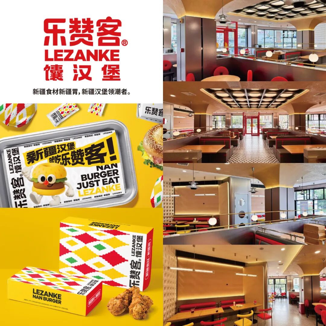 本次乐赞客品牌的全案设计,是由霖森设计团队倾力打造,他们提出“馕汉堡”这一品牌定位,以新疆人熟悉的馕为汉堡的灵魂基底,让它不仅是饱腹主食,更成为承载丝路故事的文化载体。并且提出“新疆食材新疆胃”的核心卖点,大盘鸡馕堡、炒米粉馕堡、阿达西馕堡、馕薯、炸奶疙瘩、杏干冰茶等,都是由新疆食材共同组成了兼具地域特色与普适性的产品矩阵,每一口都唤醒着新疆的“**记忆”。