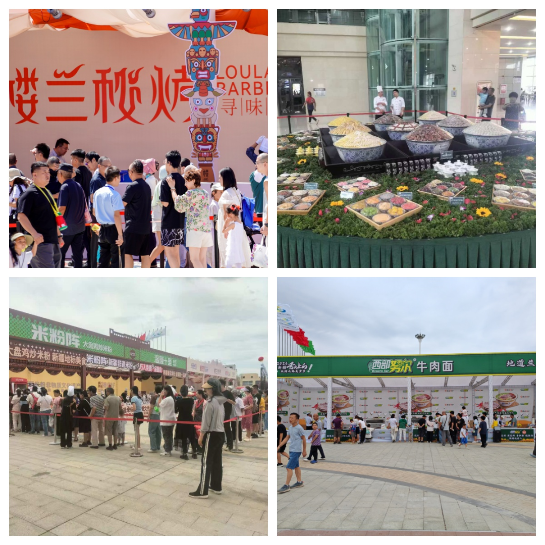 楼兰秘烤、沈派餐饮、米粉阵、西部努尔、庆源大酒店等5家知名餐饮品牌企业参加了“丝绸之路美食之最”万人品尝活动。