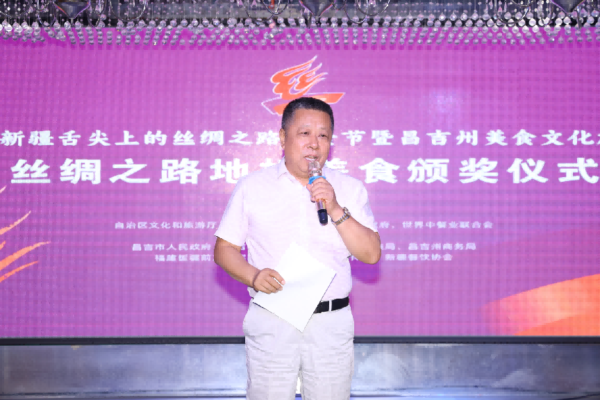 丝路飘香,盛宴难忘。在满载收获与喜悦的8月21日,2025舌尖上的丝绸之路美食节颁奖盛典在昌吉庆源大饭店隆重举行。颁奖盛典由新疆餐饮协会副秘书长刘璐主持。