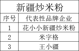 在“**十大米粉品类”中,新疆炒米粉名列前茅,其中花小小新疆炒米粉、米字格和王小疆荣获新疆炒米粉代表性品牌企业荣誉。